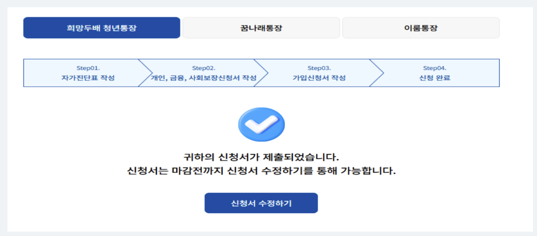 - 지속적인 근로 의지: 희망두배 청년통장은 '일하는 청년'을 지원하는 사업 취지가 강합니다. 따라서 선정 이후에도 지속적인 구직 활동이나 경제활동 의지를 보여주는 것이 중요할 수 있으며, 경우에 따라 통장 운영 기간 중 재직 여부를 확인할 수도 있다는 점을 염두에 두어야 합니다. 장기간 구직 상태가 지속되면 약정 해지 사유가 될 수도 있다는 의견도 있었습니다.